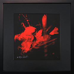 マットという厚紙を入れて、作品と表面のアクリルが直接に触れない仕上げにしています。今回は作品に合わせて、額縁、マットの色を黒にしました。 また作品の後ろには中性紙を入れ、中を密封して裏を閉じています。そのことで額内の酸化や埃などの侵入を防いでいます。